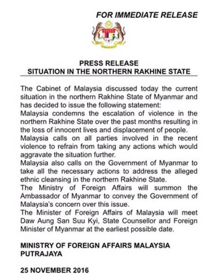 Malaysian Government to Myanmar: "Stop Alleged Ethnic Cleansing of Rohingyas"Genocide WatchNov 26, 20160 min read