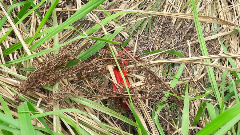 A red headband of the kind worn by members of the Kamuina Nsapu militia was wedged in the grass near the graves.