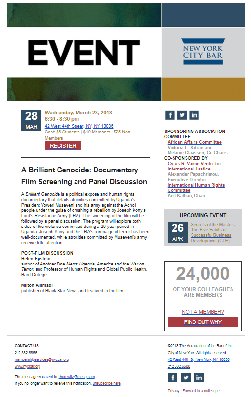 A Brilliant Genocide: Documentary Film Screening and Panel DiscussionAfrican Affairs CommitteeMar 9, 20181 min read (c) 2018 African Affairs Committee