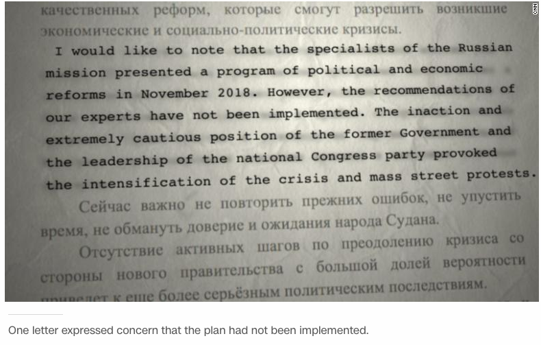 CNN has assessed the documents to be credible. They are also consistent with the accounts of witnesses who say Russian observers were seen at the recent protests in Sudan.
